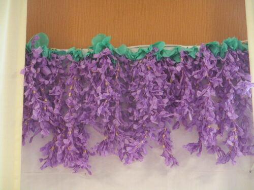 皆さんにお手伝い頂いていた藤の花の飾りが出来上がりました。