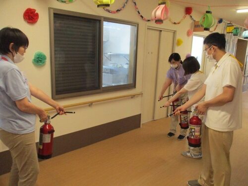消火用散水栓を持ち〝初期消火活動〟をしている場面です!📷