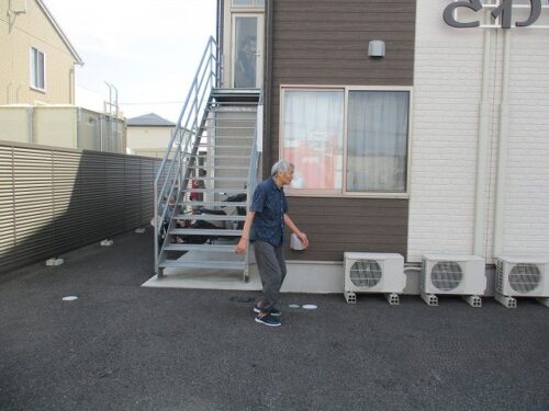 2階のご入居者様が避難階段から外へ出られる場面です‼📷
