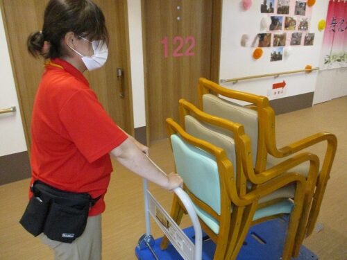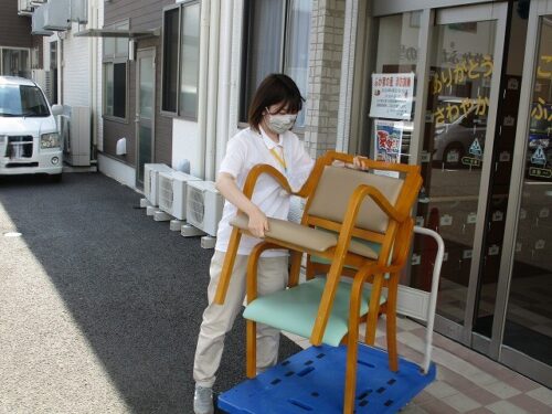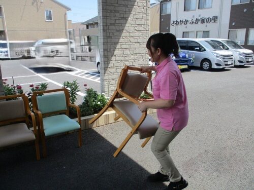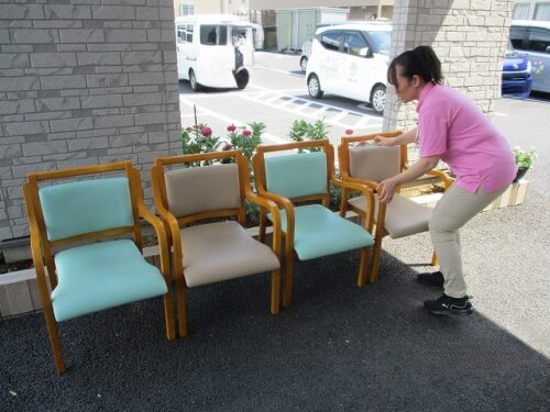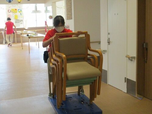 こちらは外に椅子を運んでいる様子です!