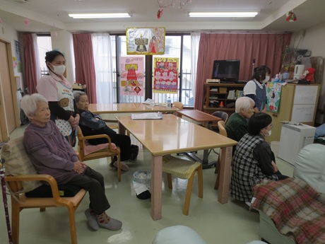 グループホームかがやき ♪ 敷地祓い ♪ 2026-03-10 2026-04-18 足立妙見宮 敷地祓いに来られました🌸 敷地祓いの様子にしっかり、入居者様、見られました🌸 各階をお塩の入った水で後、清めました🌸 ☆ う す い ☆彡_(._.)_