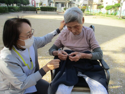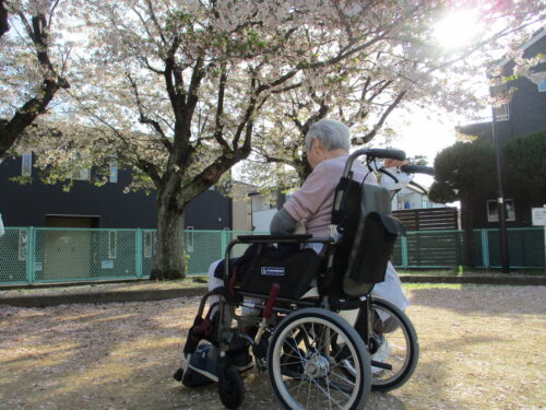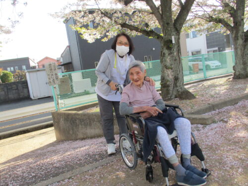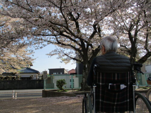 施設の裏手に桜が咲く公園があったので