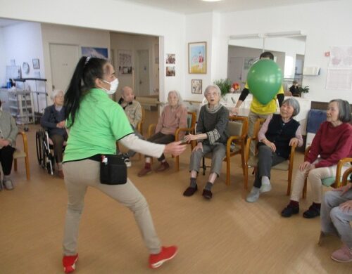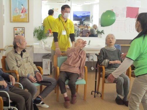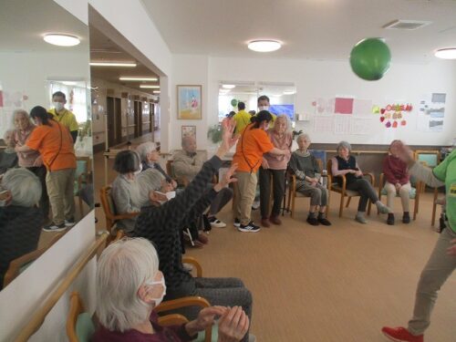 この日は皆様で輪になって、風船バレーを行いました🎈