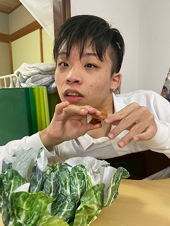 頭にも体にも葉っぱを乗せて青虫気分に大変身😊