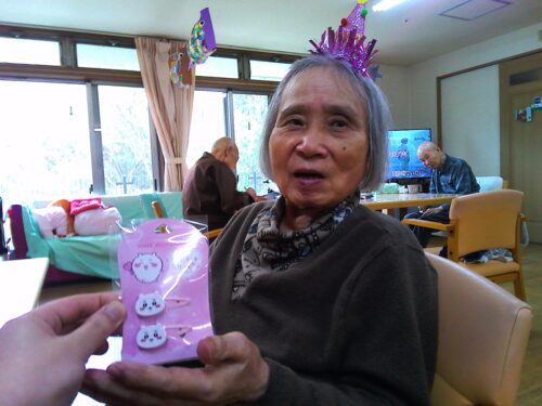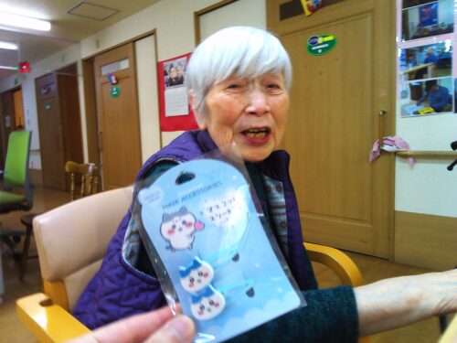 職員手作りイチゴケーキ🍓🍓🍓🍓🍓🍓と可愛いヘアピンをプレゼントです。🤗🥰