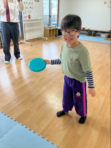 優しく投げてもらいながら、年上のお兄さん達の中に入ってフリスビー🥏を楽しむ事ができました!