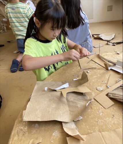 実際にダンボールを使って好きなものを作れるコーナーもあります。