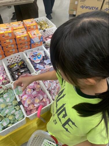 帰りに日本一のだがし売り場に行き、お菓子を選びました。