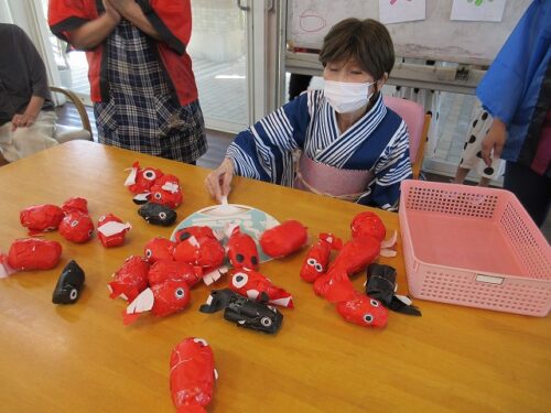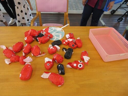 次は『金魚すくい』です!!金魚は職員の手作りです(笑)