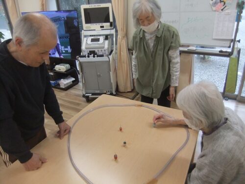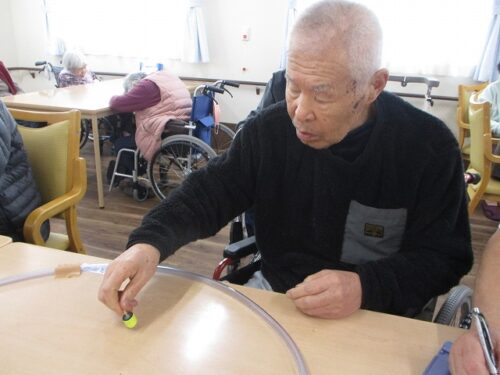 正面玄関右手に入居者様が作られた駒が飾ってあります