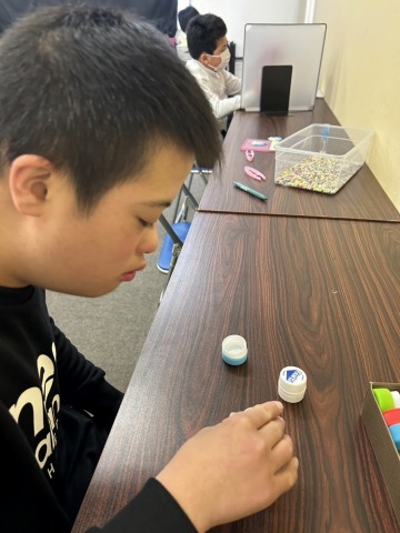楽しみながら目と手の協応動作(目で見たものに合わせて手を動かす力)や集中力を養うことができた時間となりました。
