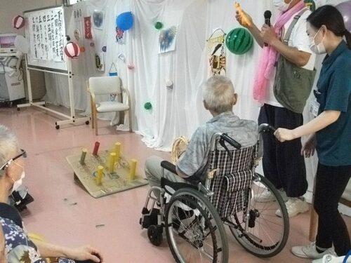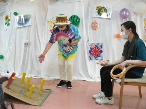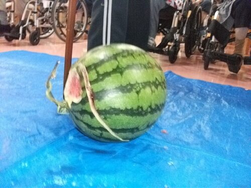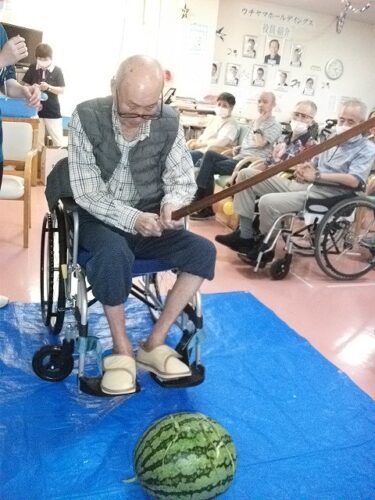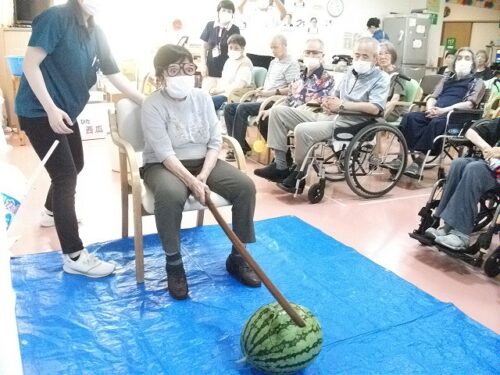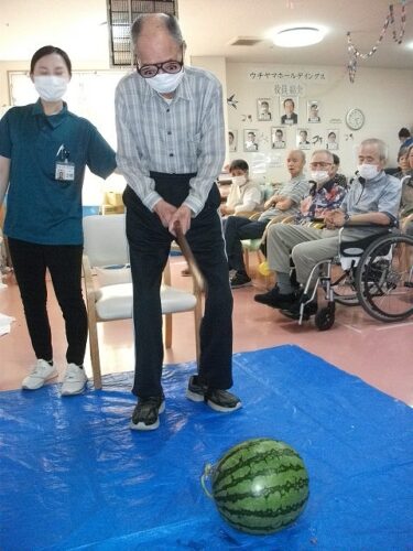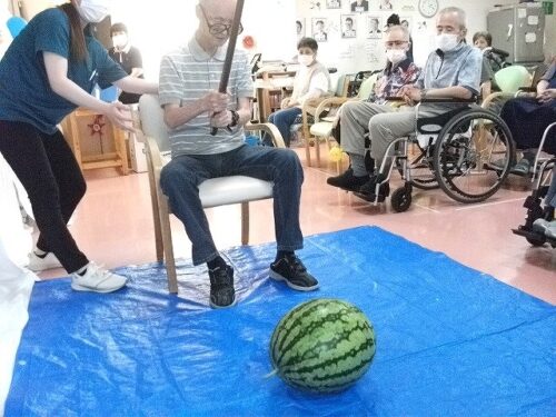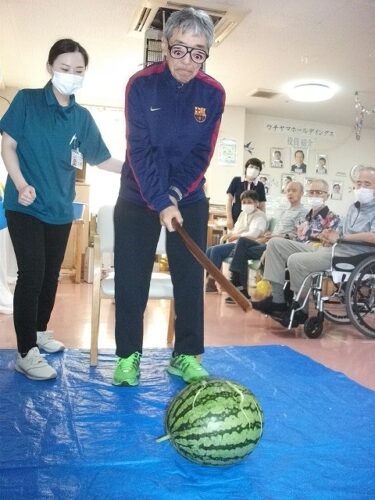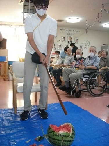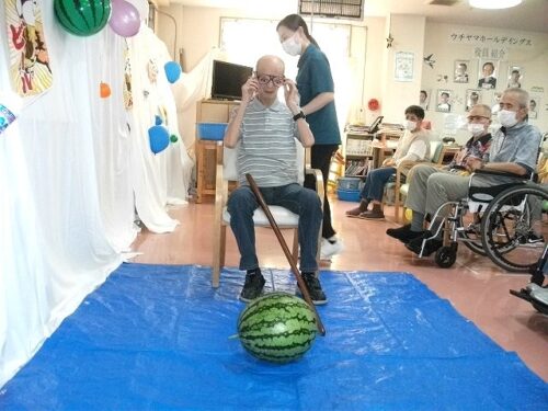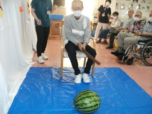 さわやか行橋館 ★夏祭り・・・③★ 2024-08-22 2025-05-26 こんにちは さわやか行橋館です 夏祭りの続編です (^o^)丿 輪投げゲームしました!! スイカ割りに挑戦です! みなさん、とても上手に割ることができました! このあと、おやつで美味しく頂きました~ (#^.^#) 松田