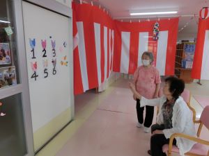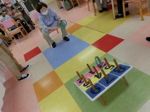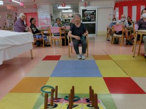 ゲームでは輪投げをし景品はお菓子をご用意。
