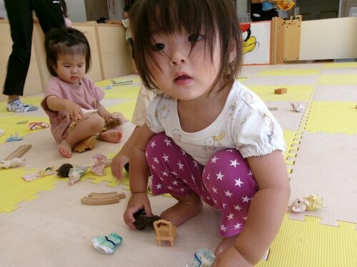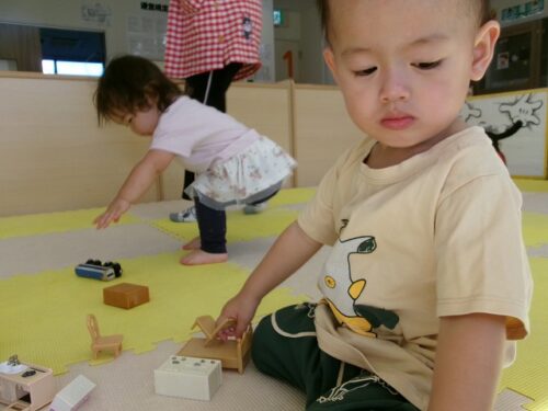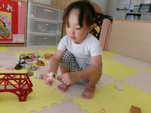 おやつの時間までは好きなおもちゃで遊びます🚄