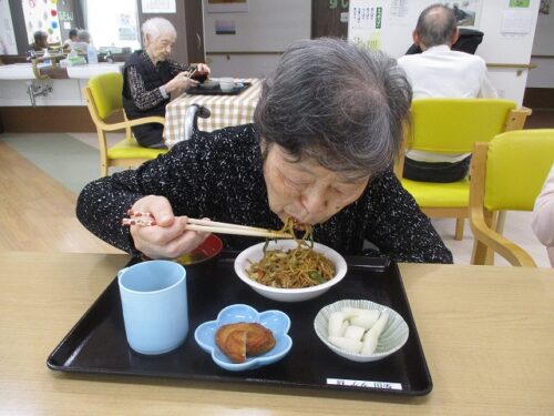 さわやかグループホーム むろらん 焼きそば作り♪ パート2 2024-08-25 2024-08-23 前回の焼きそばを作って頂いた写真を掲載しましたが今回はみなさんが食べている風景を掲載しました! 皆さんで作った焼きそばはいつもより何倍も美味しいですね!
