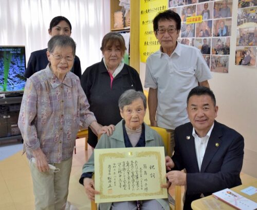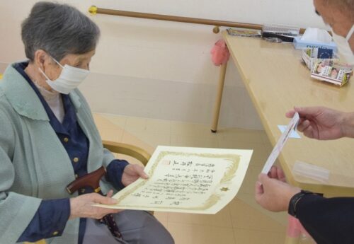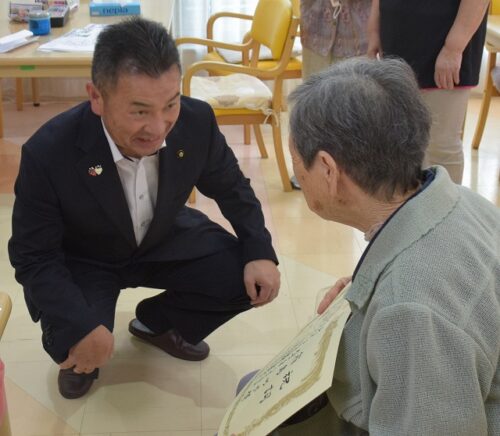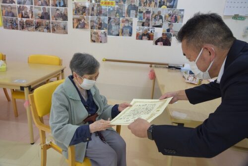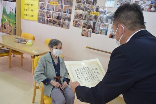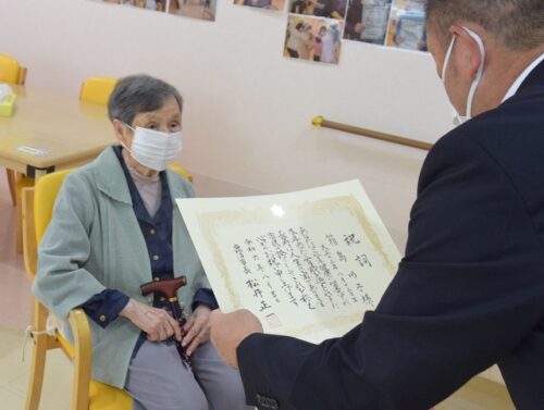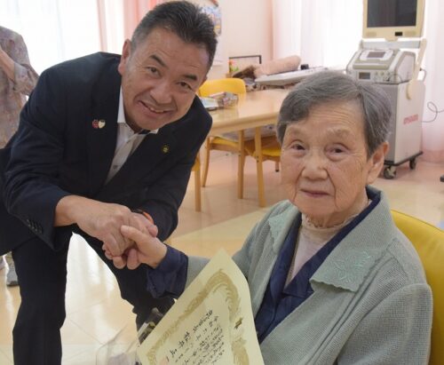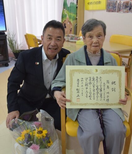 松井市長は「長寿は人生の宝、市民の誇りです」とHさまを労いました!