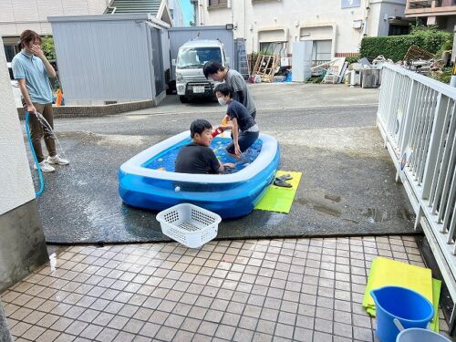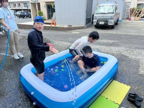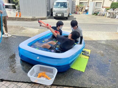 外は快晴の中、水鉄砲や水風船で遊びました🔫