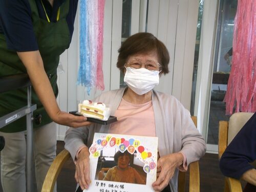 おめでとうございます!職員から色紙とケーキのプレゼントです✨これからもお元気でお過ごしください😊✨