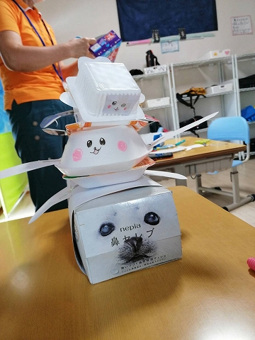 材料はプラスチックトレーや牛乳パック、段ボールを薄く剝がしたものなど廃材を中心に使用しました。