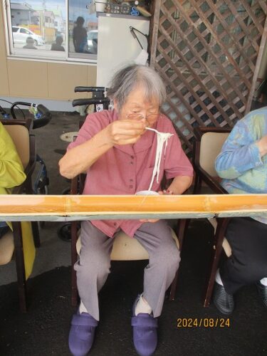 そんな雨の合間を縫って「流しそうめんレク」開催しました😊