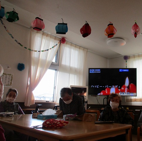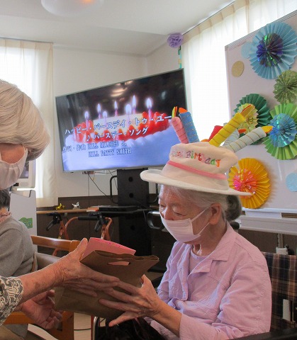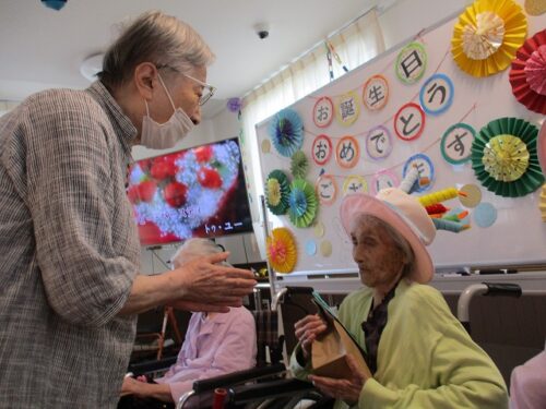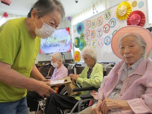 ↓こちらのご入居者様が手に持っているメッセージカード💌はそれぞれお誕生日を迎えられた
