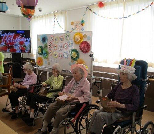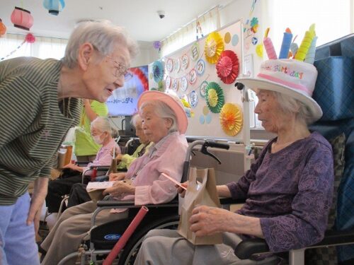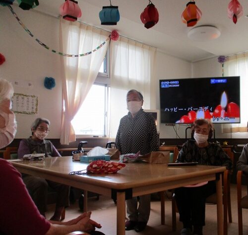 お誕生日を迎えられたご入居者の皆様、ご入居者様からのお祝いのお言葉にとても笑顔で