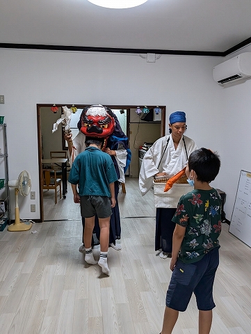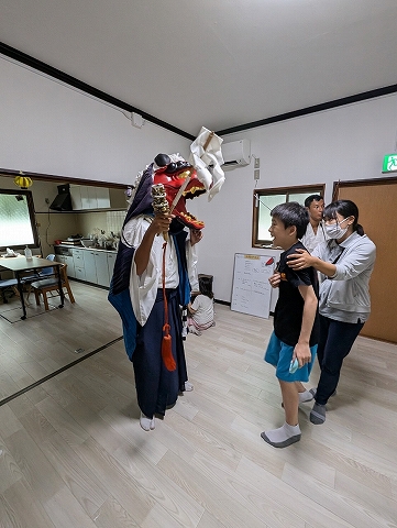こどもたちはせとうち館での初めての獅子神楽に