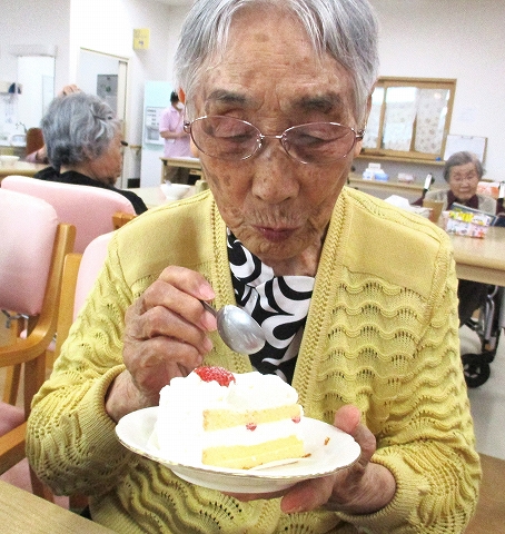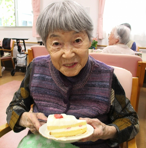 お誕生日ケーキを食べていただき、笑顔いっぱいいただきました!