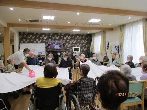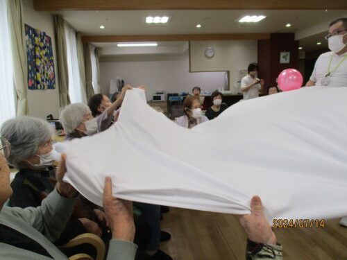 さわやかあびこ館 シーツバレー (さわやかあびこ館 千葉県我孫子市介護付き有料老人ホーム) 2024-08-31 2024-08-31 こちらのレクは猛暑日の為外気浴が出来ず この様なシーツバレーを行い楽しみました。 さわやかあびこ館 籾山💖