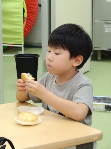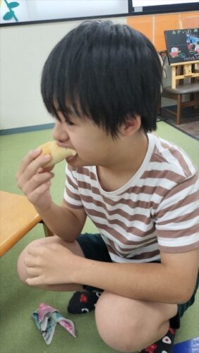 1つ目は、生地を広げてあんこを包んであんぱんを作りました