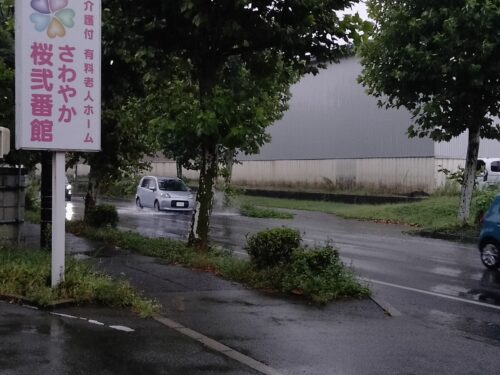 秋田市は朝から雨☔がひどく、弐番館前の道路は水がたまり、