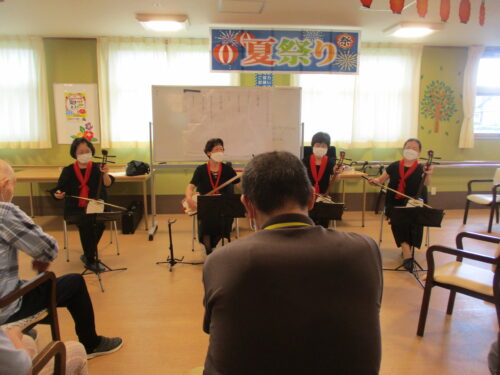 夏祭り🎆午後の部ではボランティア様に胡弓演奏会をして頂きました!