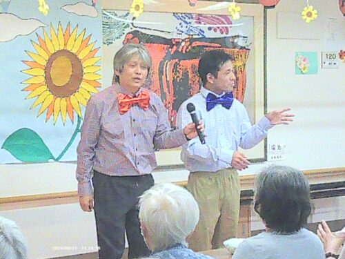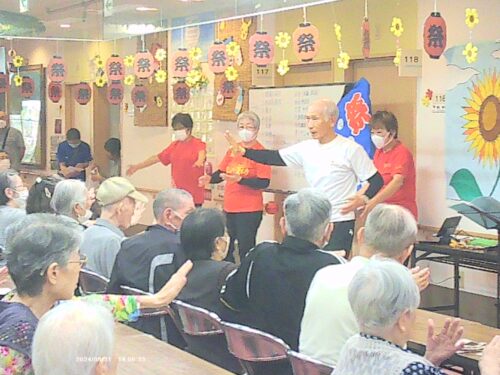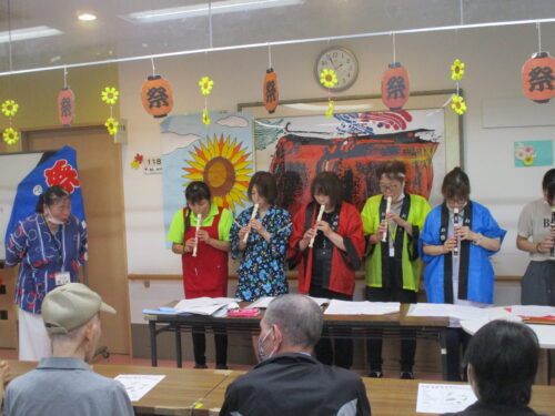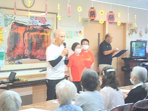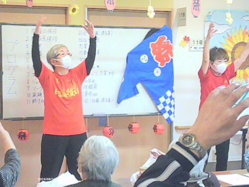 さわやか花美弐番館 さわやか花美弐番館 最新情報 さわやか花美館 さわやか花美館 最新情報 夏祭り!!!!! 2024-09-05 2024-09-05 こんにちは!投稿が遅くなってしまいましたが、8月31日に予定していました【さわやか花美夏祭り】が開催されました。 長い文章説明はほどほどに写真をご覧いただきながらお楽しみください。 職員による漫談中です。 爆笑!!とまではいきませんでしたが(笑)、そこそこのウケはあったようです...笑 女性職員らによる演奏と歌唱です。 夏の思い出、浜辺の歌、みかんの花咲く丘の3曲を披露し一緒に歌われる入居者様の姿もありました。 ボランティアの方々がさまざまな踊りや演奏を披露してくださいました。 長い披露時間にもかかわらず、最後まで活気良く出演してくださいました。 今回の参加、心から感謝いたします。 次回の投稿にて入居者様や参加者様方の姿などをお見せしたいと思います。 ぜひお楽しみに!(^^)/