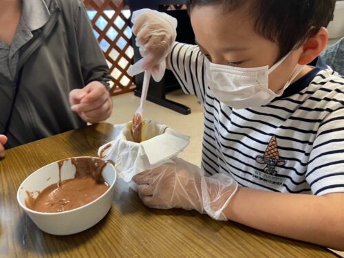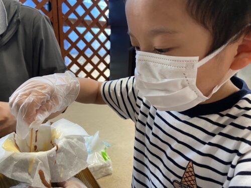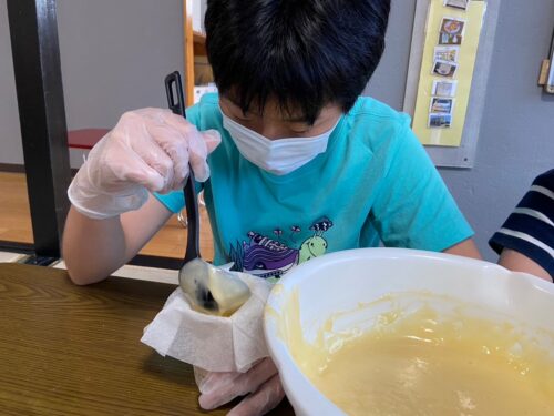混ぜ方によって色んな模様の蒸しパンができたね✨