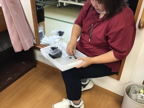 こちらは、利用者様がお仕事でされたパッキンを数えて最終チェックをしている様子です!