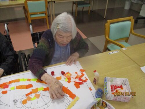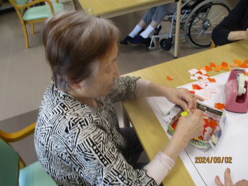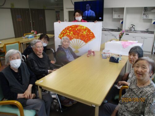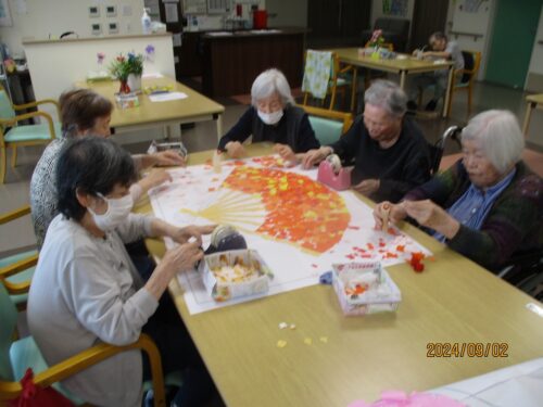 さわやかこうべにし館 未分類 敬老会の飾り②♪ 2024-09-05 2024-09-05 今回は敬老会の飾りのご様子をご報告いたします。 皆様で協力して貼り絵の扇を作りました。 前回に引き続き今回は3階で行いました。 秋っぽい色の紙を重ねながら きれいな扇が出来ました。 ~~~ 担当 植田 ~~~