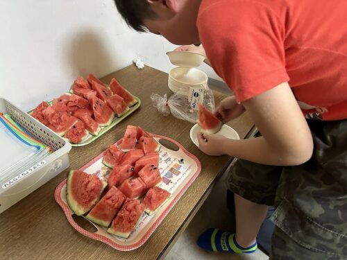 スイカ🍉も私たちも汗💦ダラダラ🥵でしたが