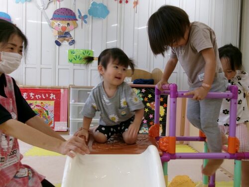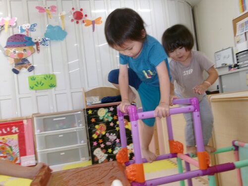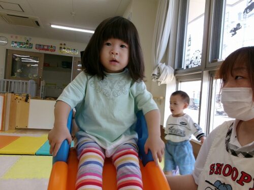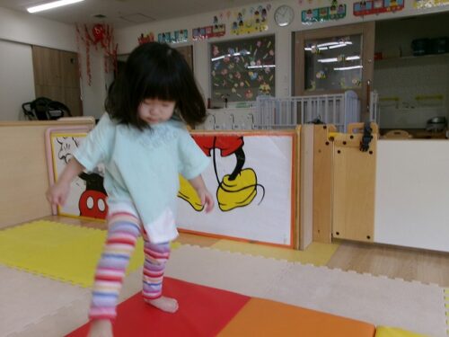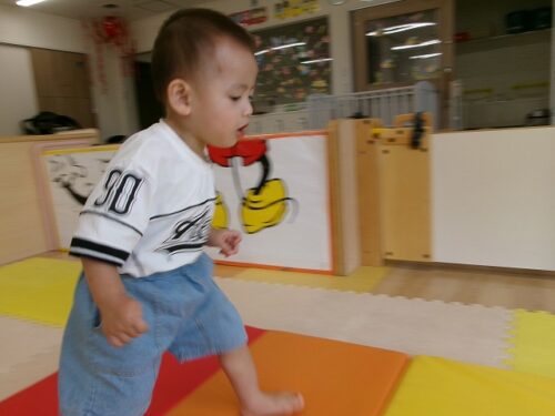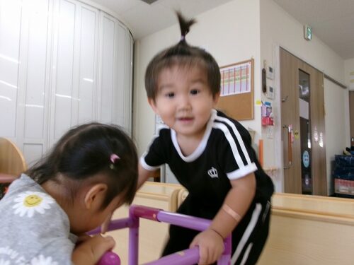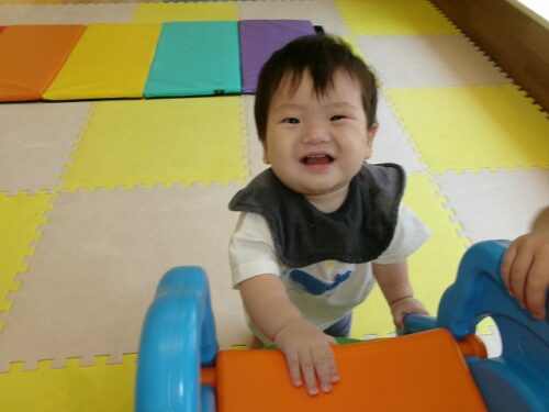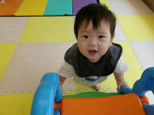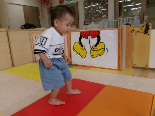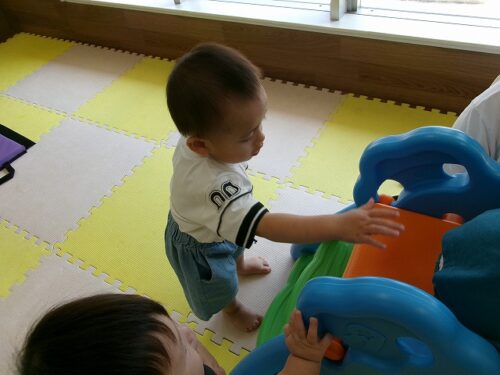 「せんせい、ぼくつかまり立ち上手になったでしょ🏅」