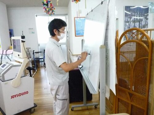 しばらくすると、伊藤職員はホワイトボードになにやら書きだしました…🙄❗