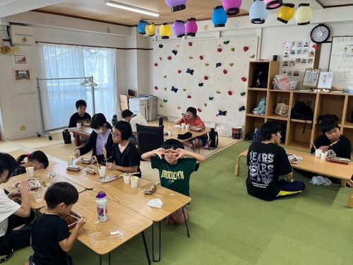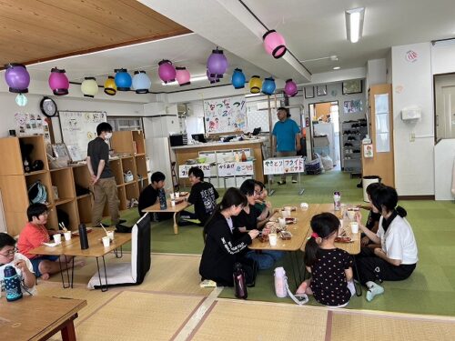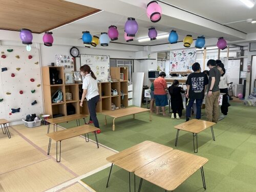 午前中はみんなで今まで作ってきた提灯や看板などの飾り付けをしていきました❗