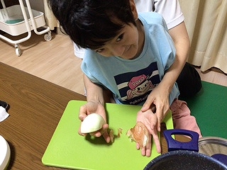 こちらは玉ねぎの皮剥きに挑戦🧅