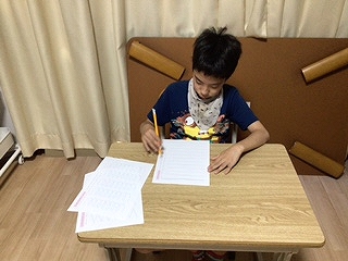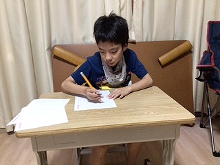 ”え~っと、僕は夏休みの宿題をするのであります🥸✨”