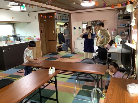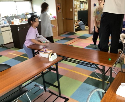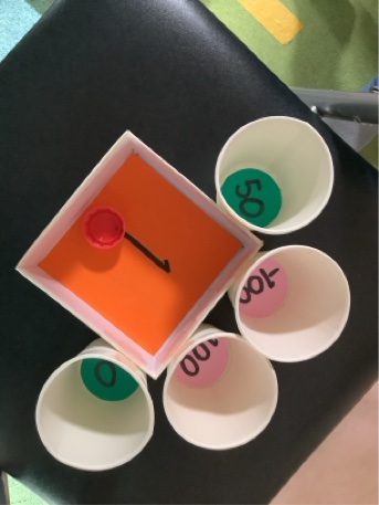 机の端からキャップを滑らせてカップの中に入れる遊びです(゚▽゚)