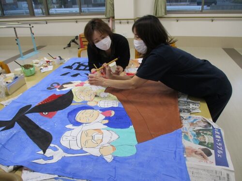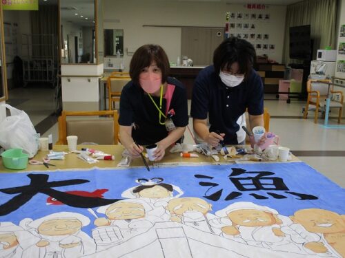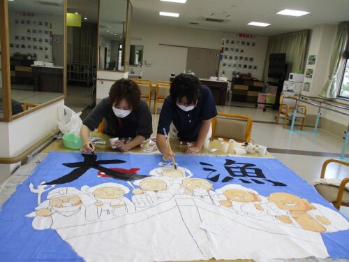 9月28日の夏祭り開催にむけて、大漁旗を製作しました。