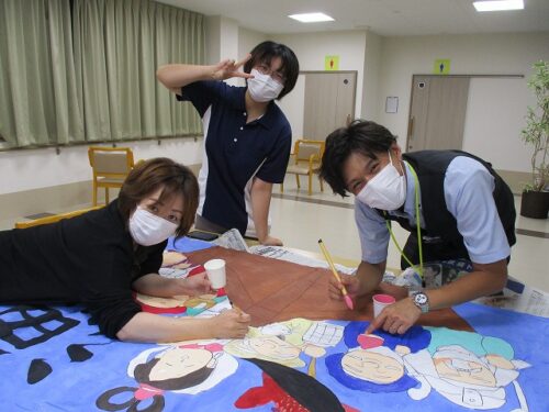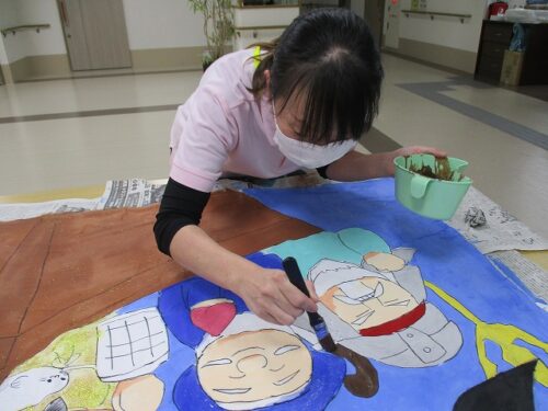 色塗りは、和田施設長筆頭に ゆかいな仲間たちで