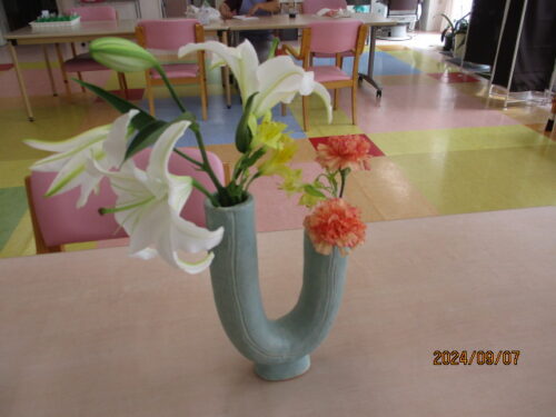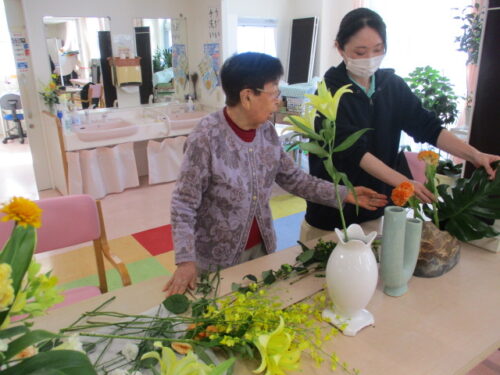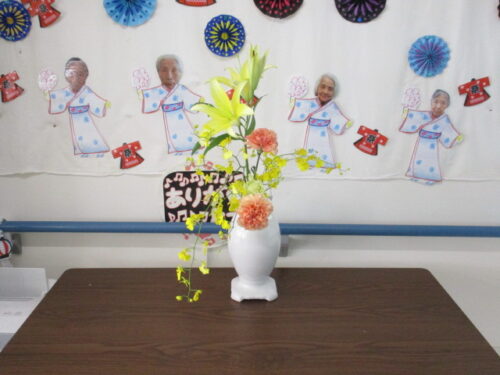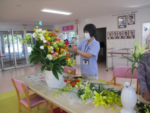 そのお花を、入居者の 中村様 にお手伝いして頂き、