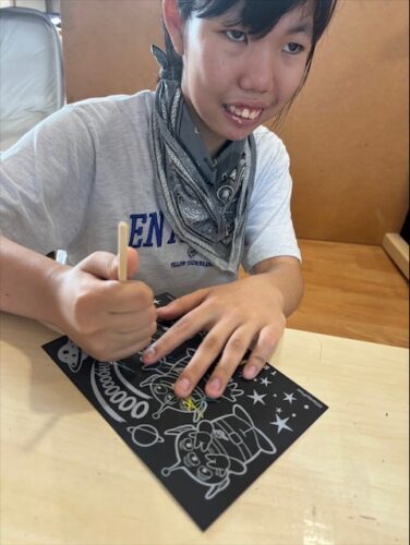 さわやか愛の家 さいだいじ館 スクラッチアートをしました☺️ 2024-09-10 2024-09-10 こんにちは😃いつもさいだいじ館のブログをご覧下さりありがとうございます。 今日は、活動でスクラッチアート🎨をした様子をご紹介させて頂きます。 今日も一日元気に楽しく安全に過ごす事ができました!