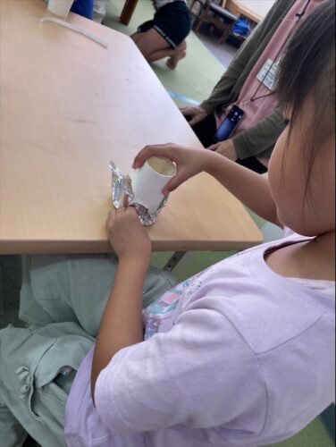 その次はアルミホイルを飲み口側にピタッと張ってくっつけていきます!