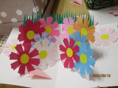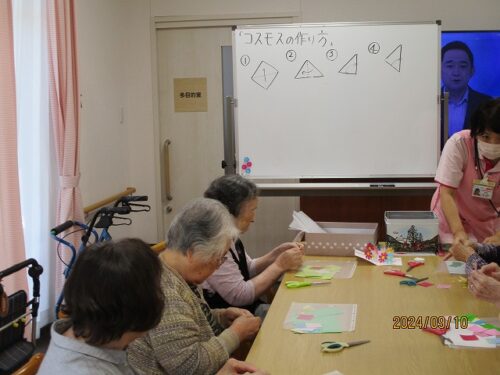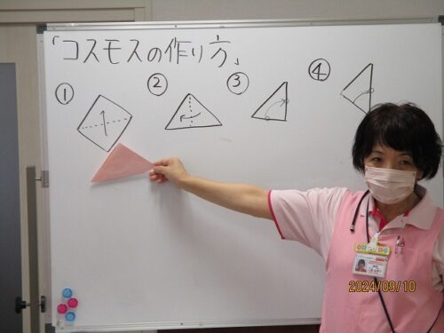 午後からは物作りレクで折り紙を使って、🌸を制作します