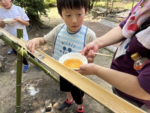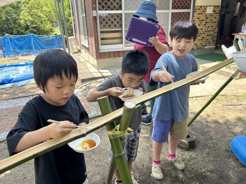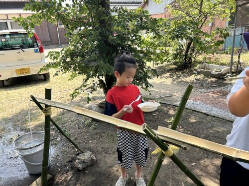 本日は、夏の風物詩「流しそうめん」の様子をお伝えします